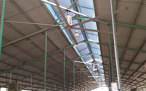 在解决工厂车间霉菌滋生的问题上,大型工业风扇有优势解决,巨大扇叶旋转让室内空气全方位、360°循环,通风无盲区,在前期投资上,工业大风扇能以小投资,达到良好的通风降温效果。