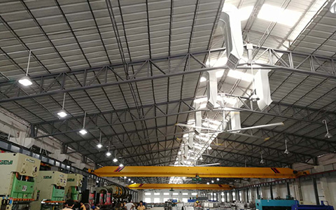 本次项目是祈信厂房通风降温工程,其厂房高大,面积广,员工也比较分散,热空气在厂房内难以消散,再加之生产设备产生热量和异味,导致厂房环境进一步变差,高温、闷热、异味的工作环境无法很好的改善,影响员工工作情绪和生产效益。